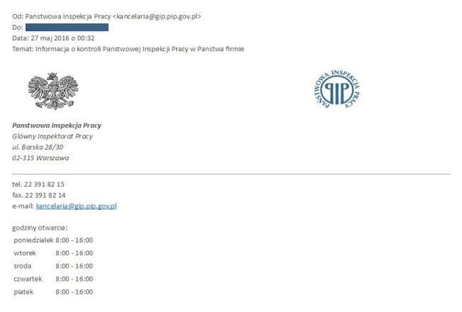 Poniżej pełna treść wiadomości e-mail:
