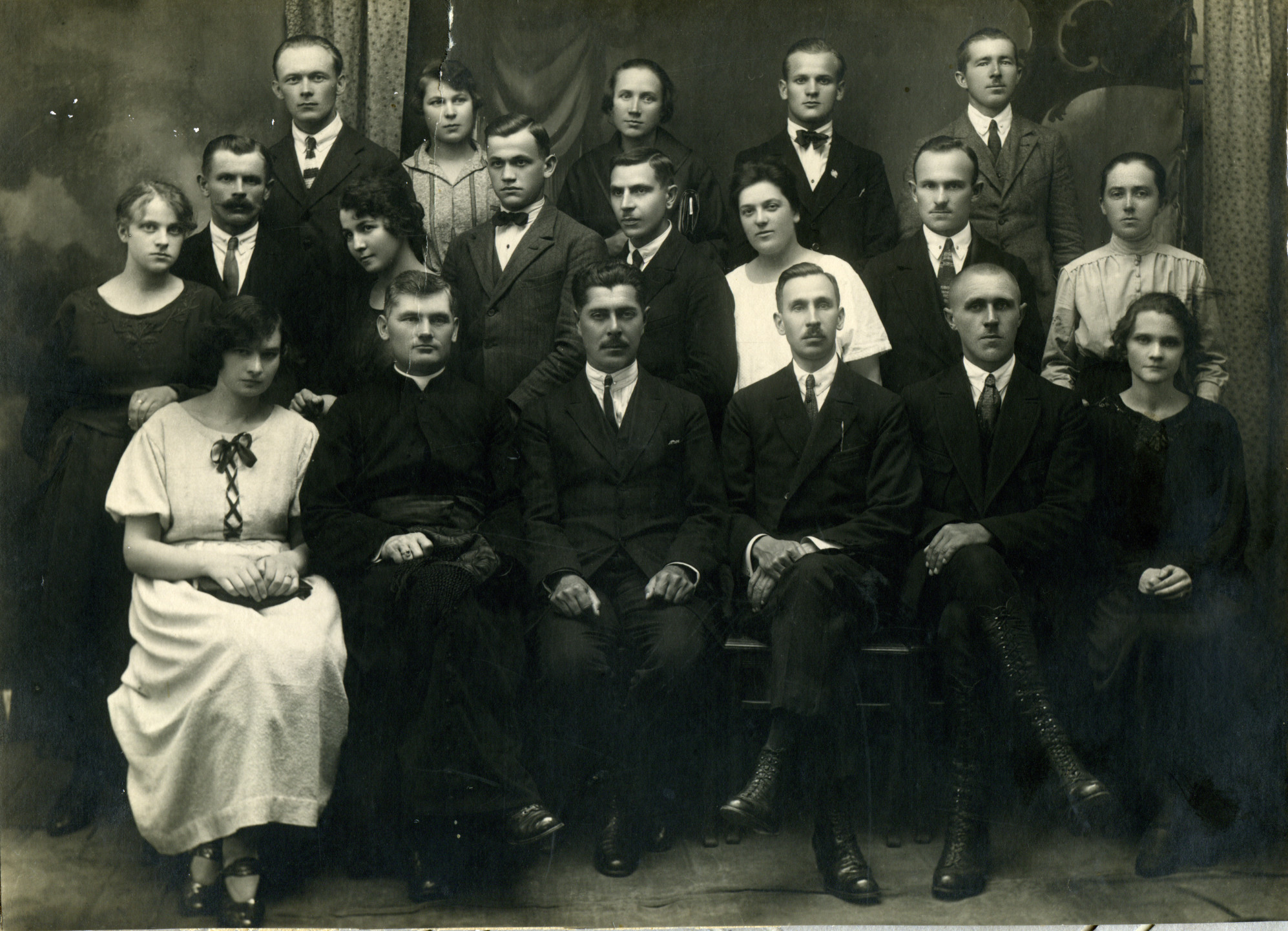 Na zdjęciu zbiorowym kursantów: Helena Niedzińska (Rewkowska) na kursie w Święcianach któy odbył się od 1924.05.25 do 1924.06.28 - trzeci rząd, druga z prawej, a jej przyjaciółka Janina Golec - trzeci rząd, pierwsza z prawej.