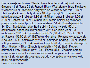 Dokument 92 ; ciocia Anna Breycha (Niedzińska) "za Zenusia wysłałam": [będzie płacić więcej, razem z Helą].