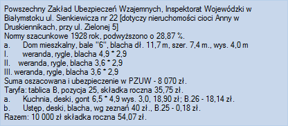 Dokument 90 ; Dowód ubezpieczenia domu w Druskienikach na ul. Zielonej 5 od ognia, Białystok 26 listopad 1928 roku ;