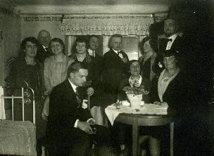 Pierwszy z lewej strony siedzi Stanisław Rewkowski, obok niego druga z lewej strony jego matka Wiktoria.