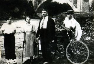 Od lewej, Irena, Józefa, Maurycy i Zygmunt Zdanowicze nad Prutem - z rowerem Heńka.