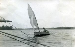 Na zdjęciu powyżej siedzę sam w łodzi (Zygmunt Zdanowicz) - ale to tylko dla fotografii. Łódź miała bowiem dwa żagle i trudno nią było manewrować w pojedynkę. Do foka musiał być normalnie ktoś drugi. Czasem wiatr ucichał i żagle były bezużyteczne.