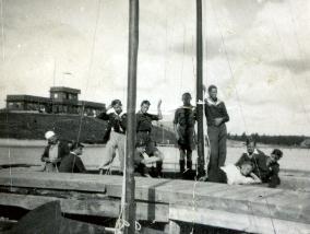 Olaf Dworakowski na statku "Elenska" na Bałtyku, na morskim kursie harcerskim.