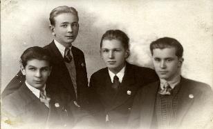 Ostatnie, pożegnalne zdjęcie zastępu "Jeleni" - od lewej strony: Kazik Skawiński, Cyryl Pawłowski, Zygmunt Zdanowicz i Olaf Dworakowski.