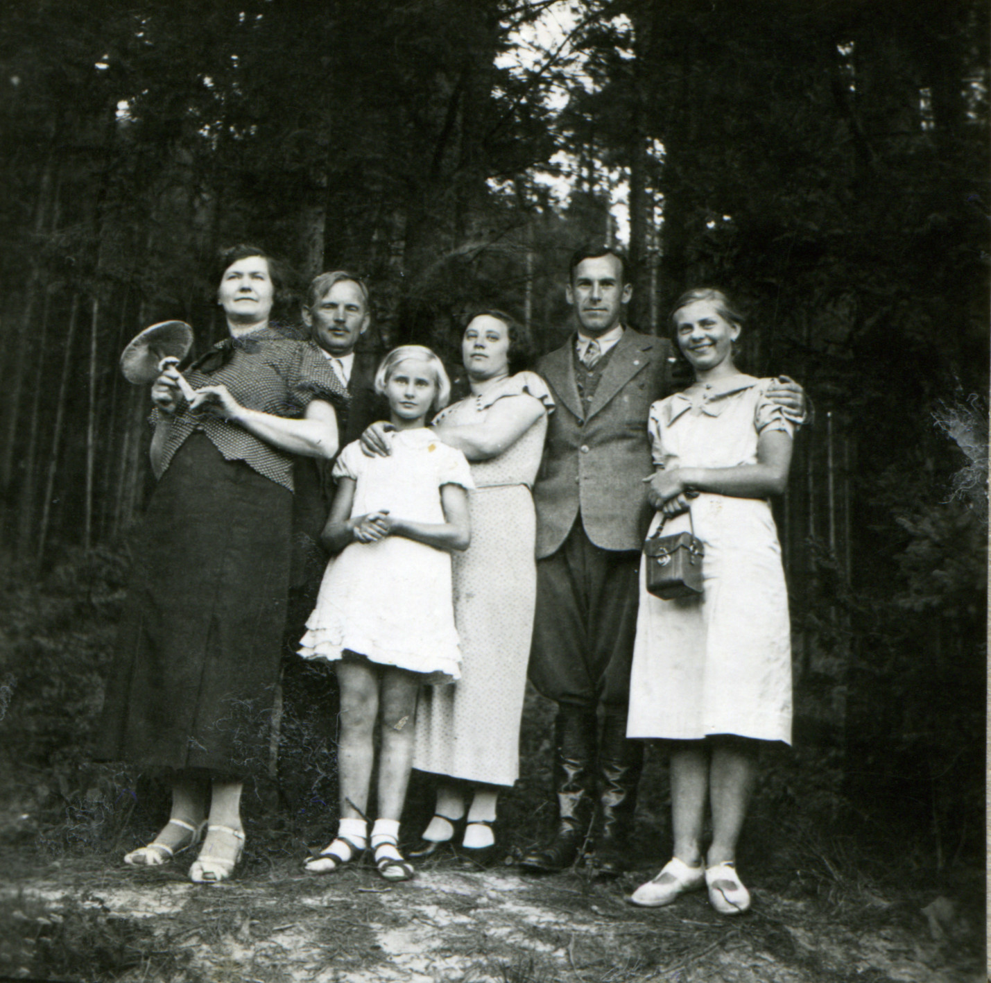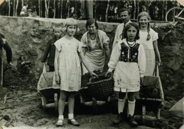 Rodziny Kijanków i Nalepińskich podczas sypania kopca Marszałka Józefa Piłsudskiego na Sowińcu w Krakowie w czerwcu 1935 roku; Jasia pierwsza od lewej w pierwszym rzędzie, druga Irena Nalepińska, za nimi od lewej Poldek Nalepiński, Paulina Kijanka, Leon Nalepiński i Józefa.