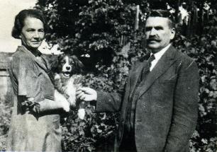 Józefa i Maurycy Zdanowicz z psem Miśkiem
