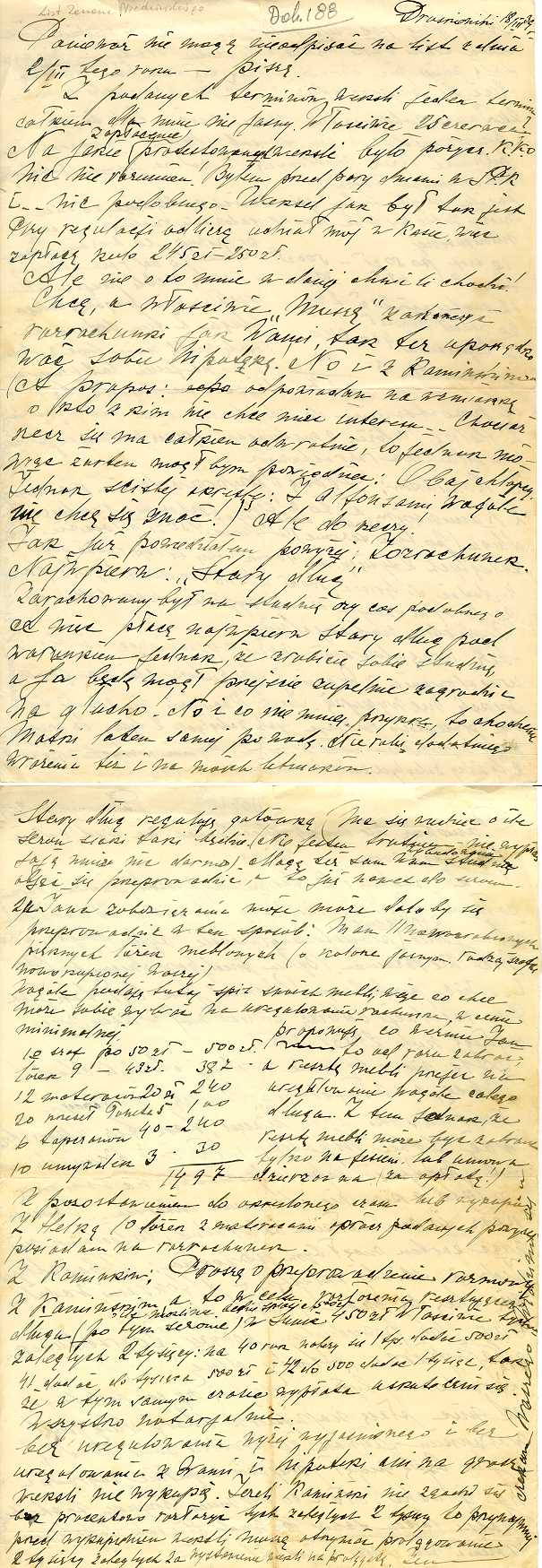 Dokument 188 ; List Zenona Niedzińskiego do Anny Breychy (Niedzińskiej); Druskienniki 18 marzec 1939 roku ;