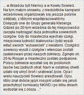 S.G.O. "Polesie" szła od Włodawy przez Radzyń Podlaski, Parczew, Kowel i Mołoryty. W Mołorytach przebywali ewakuowani mieszkańcy Sejn, m.in. Konrad Przyrowski z ojcem i bratem. W liście do mnie napisał: