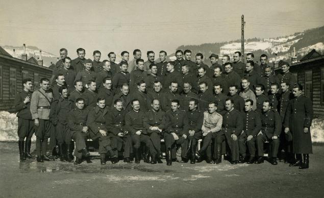 Oflag XVIII B Wolfberg ; Henryk Zdanowicz - w drugim rzędzie - szóst z lewej strony (w okularach)