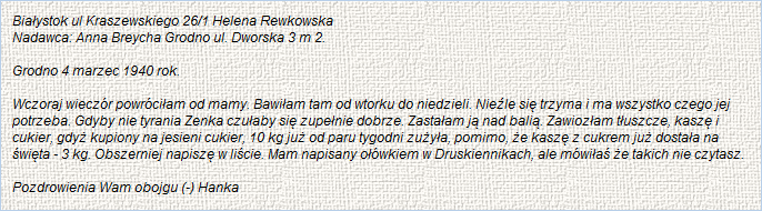 List Pauliny Kijanki, wysłany z Krakowa do swojego męża Jana, siedzącego w obozie dla internowanych Polaków w Buèan na terenie Rumunii od 18 września 1939 roku. Oryginał zaginął.