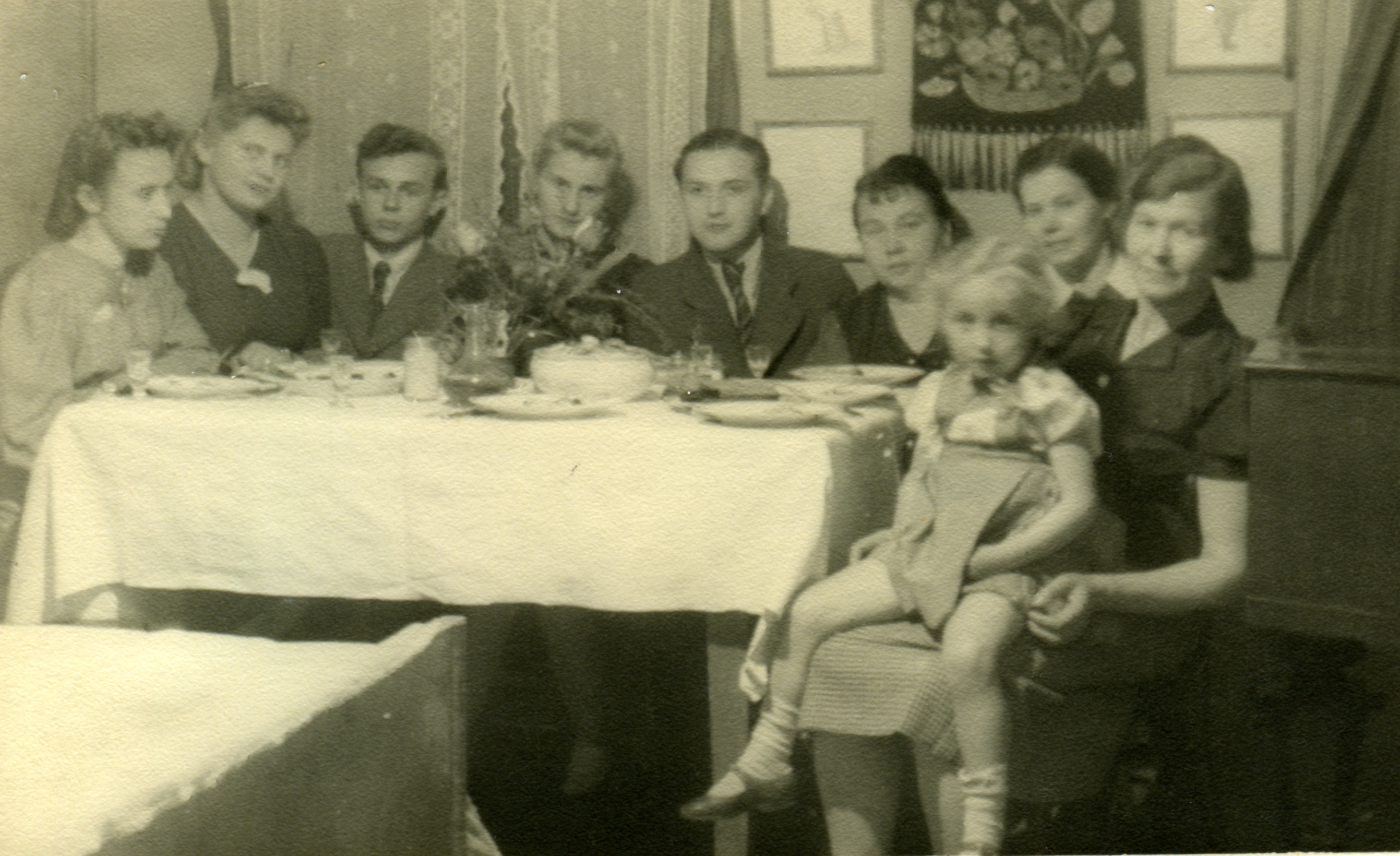 Od lewej strony: Irena Nalepińska (Bastor), Józefa Kijanka (Badowska), Poldek Nalepiński, Janina Kijanka (Zdanowicz), Tadeusz Gorycki, nie wiem,... Helena i Paulina Kijanka (Gorycka), na kolanach Ania.