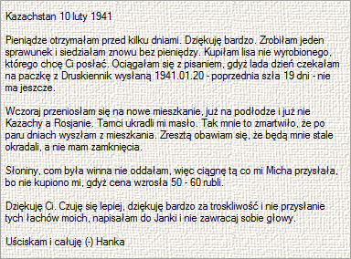 List Anny Breychy (NIedzińskiej) do siostry Heleny Rewkowskiej (Niedzińskiej) - 9 styczeń 1941