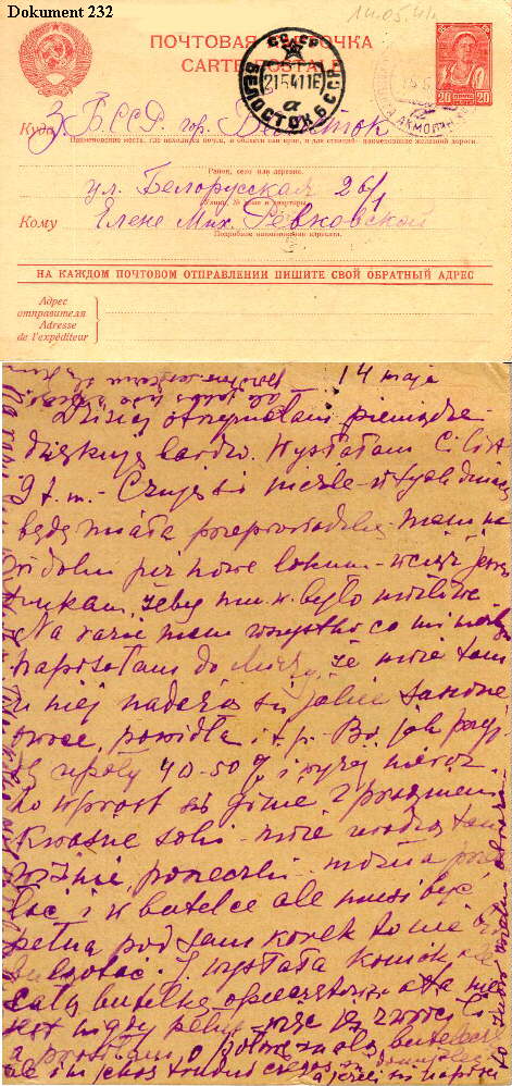 20 maj 1941 roku ; List cioci Anny Breychy (Niedzińskiej) do siostry Heleny Rewkowskiej (Niedzińskiej) ; odczytanie i przepisanie Zygmunt Zdanowicz