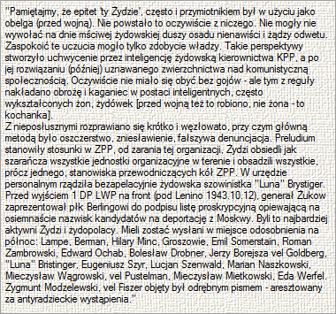 Lista proskrypcyjna była już podpisana przez Wandę Wasilewską [która później została odsunięta od władzy w ZPP, pozostała w ZSRR i w ten sposób uratowała się przed czystką w PRL] i gen. Karola Świerczewskiego "Waltera" [może właśnie dlatego musiał zginąć później, już w PRL]. Takiego cudu mógł dokonać tylko rozkaz Józefa Stalina. Po krótkim namyśle Zygmunt Berling odmówił podpisu. Popełnił błąd nie do darowania, który ciężkim brzemieniem legł na dalszym rozwoju wydarzeń i którego skutków nie zdołał naprawić (przy tym sam mało nie zginął).