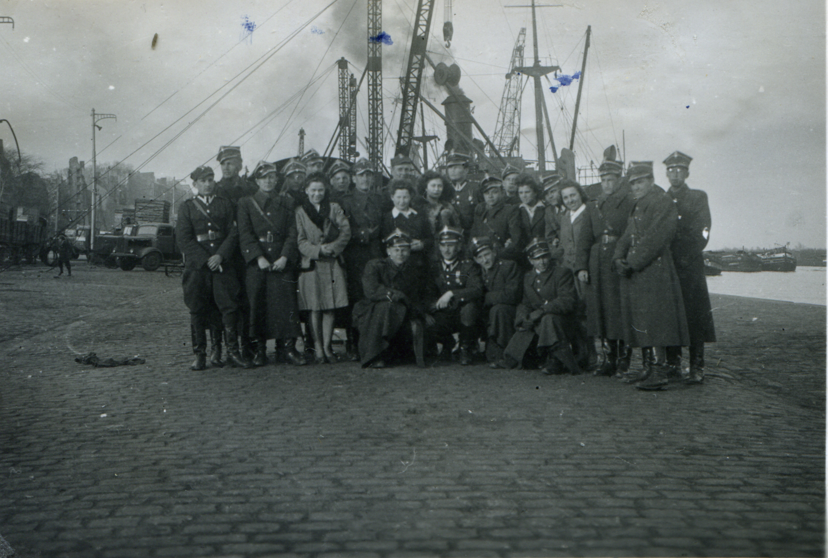 Zygmunt Zdanowicz z kolegami, drugi od lewej strony w Szczecinie na Wałach Chrobrego.