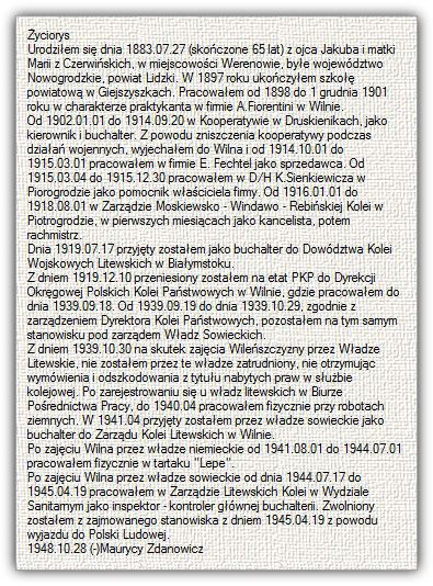 Dokument 289; Życiorys Maurycego Zdanowicza; Łódź 28 październik 1948 roku ;