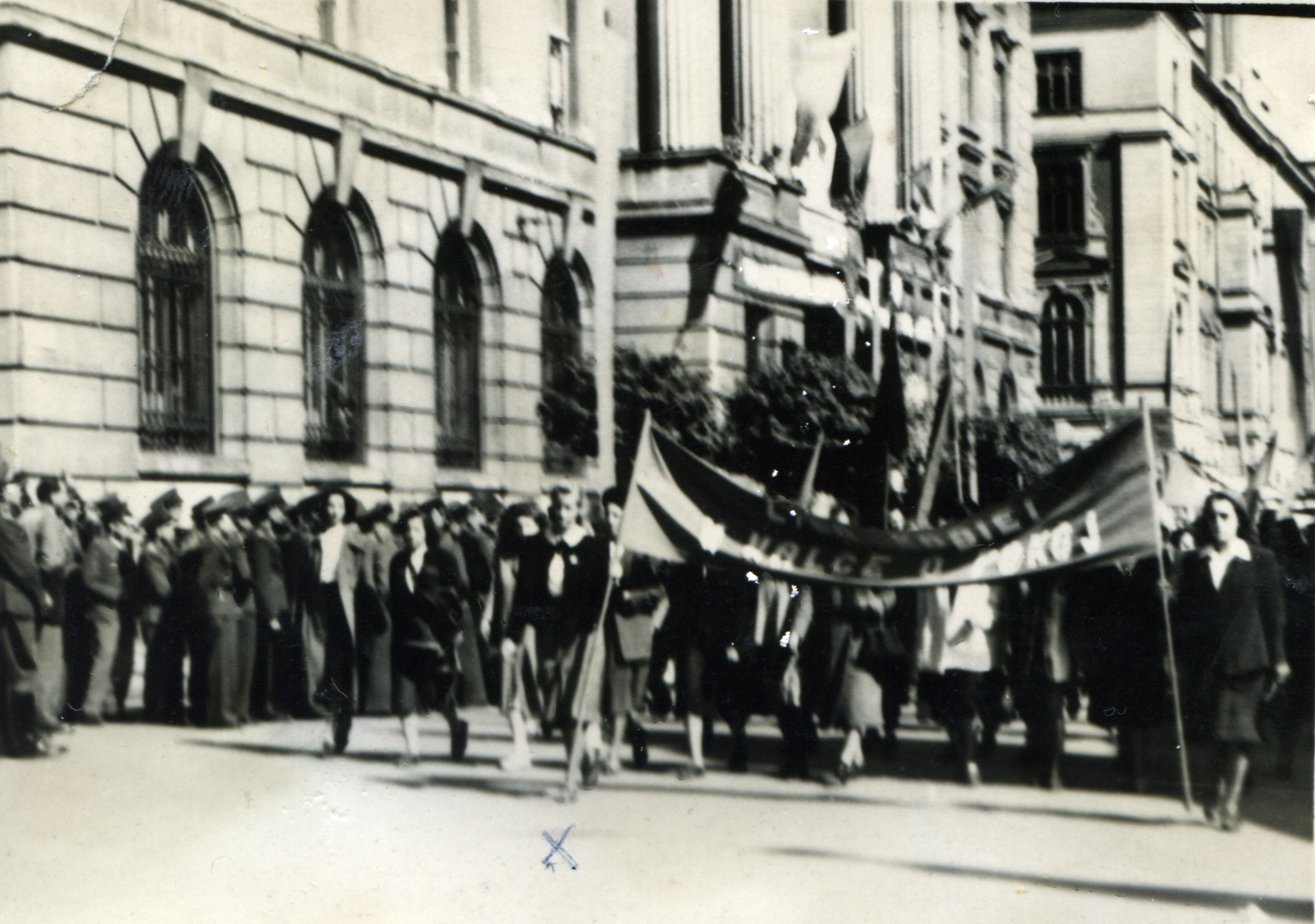 Jasia Kijanka (Zdanowicz) na pochodzie pierwszomajowym;