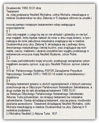 Do testamentu dołączona była notatka cioci Michaliny Neufeld (Niedzińskiej) ;