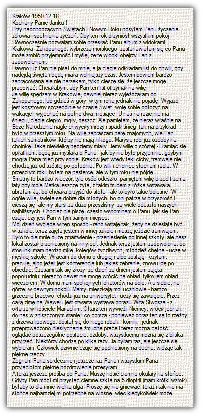 Dokument 301; Kartka do cioci Heleny Rewkowskiej (Niedzińskiej) - Kraków październik 1950.