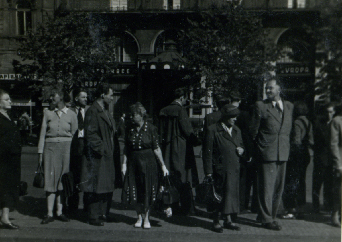 z wyznaczoną marszrutą, bo przez Pragę. W Pradze nie mieliśmy zarezerwowanego hotelu. Każdy szukał noclegu na własną rękę, ale wszędzie było zajęte. Wieczorem spotkaliśmy się wszyscy na schodach ambasady polskiej. Mieliśmy przed sobą perspektywę spania na schodach. Ambasador był bezradny. Ochrzanił nas tylko za samowolę. Jeden z kolegów, będący na wycieczce również z żoną, znający dobrze język niemiecki i mentalność Czechów, namówił kilku z nas, którzy również byli z żonami, abyśmy udawali wycieczkę niemiecką. W recepcji hotelu on rozmawiał po niemiecku, a myśmy milczeli po polsku w poczekalni. Po chwili przyniósł nam karty meldunkowe do wypełnienia. Każdy z nas otrzymał osobny pokój dwuosobowy. Na widok polskich paszportów recepcjonista zdębiał, ale już nie mógł się wycofać. Hotel był reprezentacyjny i drogi, do tego doszedł wydatek z naprawą uszkodzonego buta Jasi i zaplanowane piwo Pilzner. W nadprogramowej Pradze wydaliśmy nadprogramowo dużo pieniędzy. W dalszej części wycieczki musieliśmy zachować ścisły reżim oszczędnościowy. W Brnie, zamiast napojów chłodzących piliśmy w hotelu wodę z kranu. Jedliśmy tylko to co przywieźliśmy ze sobą, czyli konserwy i czerstwy chleb.