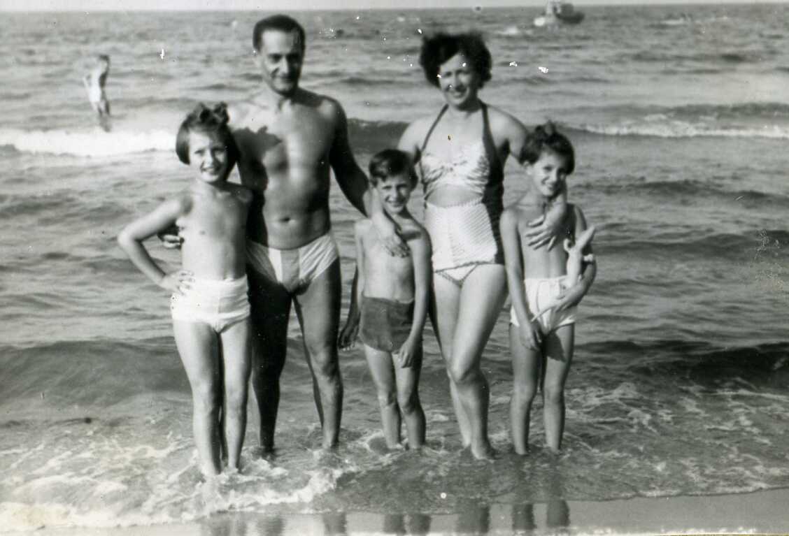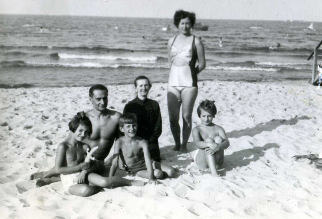 Emilia i Stanisław Rewkowscy z dziećmi na plaży ;